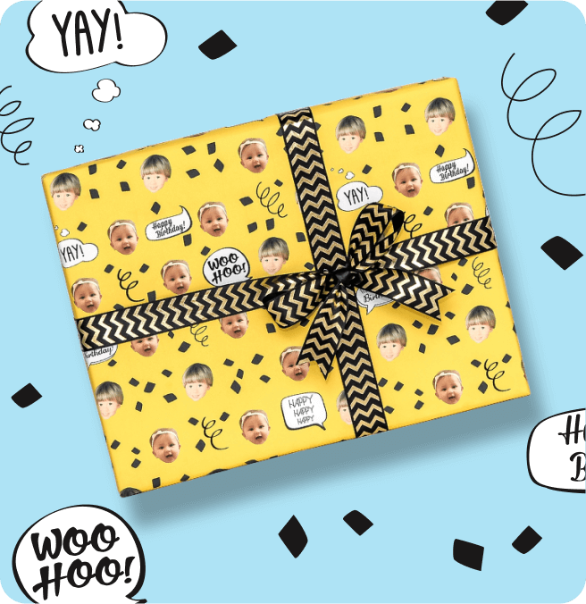 Gifts featuring your face, your pets or the people you love with your own custom gift wrap.