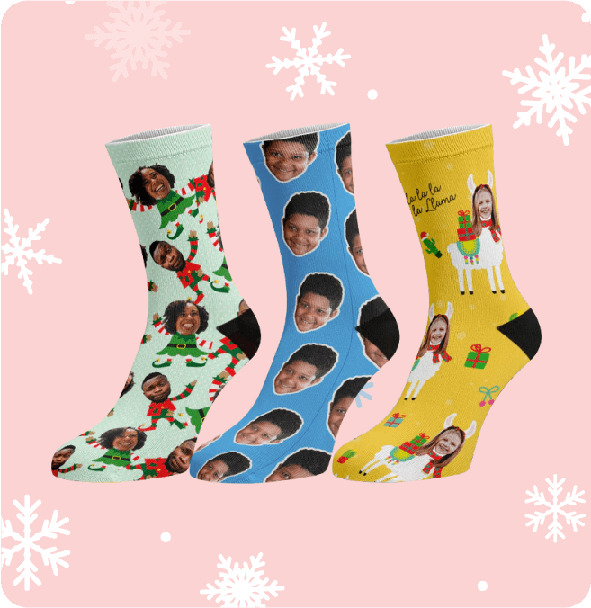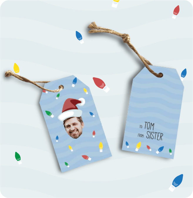 It starts with wrapping paper, but why stop there? We print your face (or theirs) on tags, socks, and more.